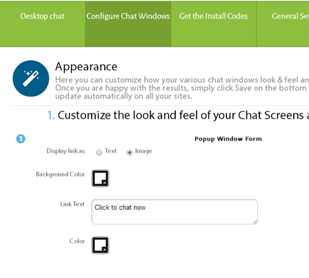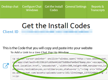For the “Popup Window Chat” paste the code where you want the chat link to appear.